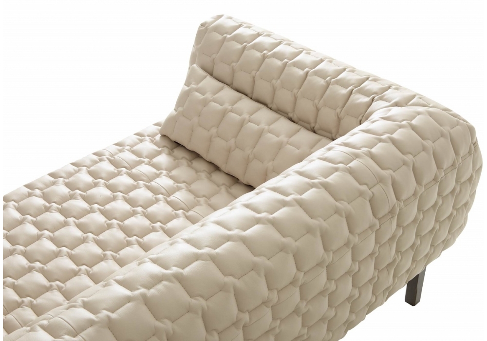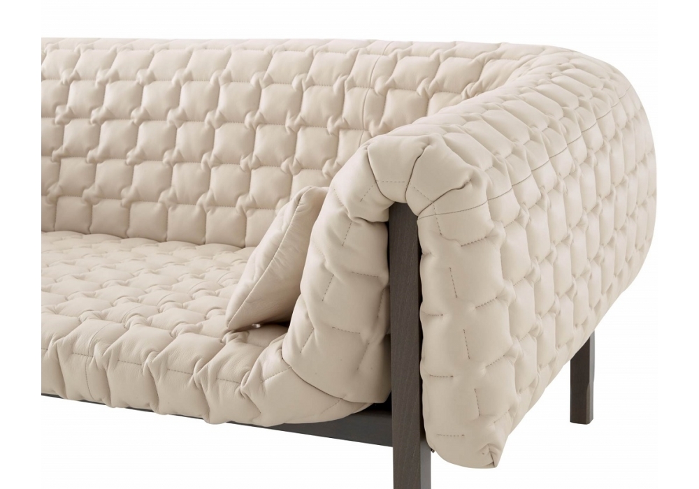 For Ligne Roset, Ruché (the name refers to a gathered or pleated fabric which serves as a decoration on a piece of clothing) designed by Inga Sempé brings together the unusual and the traditional. The unusual thing about this piece is its solid wood structure, and the great traditional element: the quilting, the very heart of its savoir-faire. Its rangy uprights and the undulations of its duvet combine to produce a harmonious union of rigorous straight lines and soft, welcoming curves.