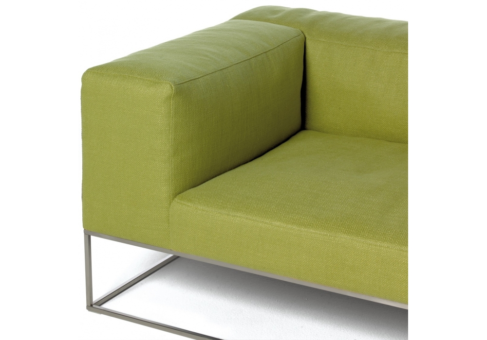 Ile Club designed by Piero Lissoni for Living Divani is a series of elements with different dimensions with armrest and back structure in double-paneled poplar and pine. Seat chassis in lacquered steel with coated rubber elastic straps. Frame and seat cushion padding in differentiated density polyurethane foam and Visco-soft “Xtra-pur”, covered with a quilted mat in prewashed and sterilized goose down, stitched into separate compartments, or covered with acrylic fibre layers. Under seat panel in thermo bounded rigid wadding, 100% polyester. AISI 304 stainless steel base with matt satin-finish. Fabric or leather upholstery, both fully removable by zippers and Velcro fastenings. On request quilted seat cushions available, non-removable leather upholstery. Seat depth 66cm.