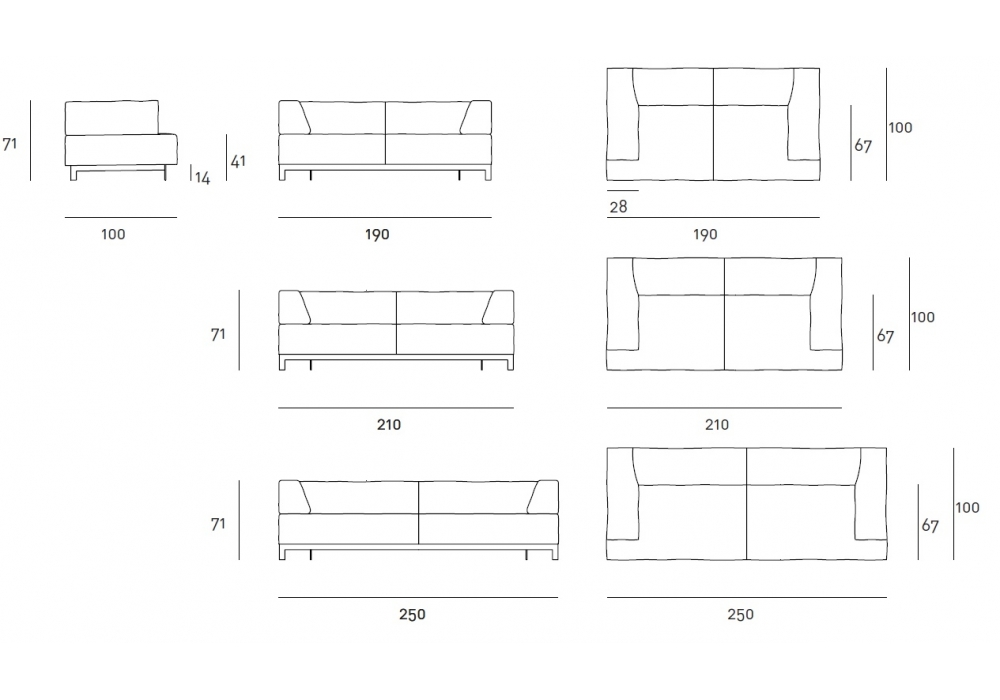 Metrocubo designed by Piero Lissoni for Living Divani is the sofa with bold forms, softened thanks to the new comfortable padding. Fixed or modular sofa. Frame in double-paneled poplar and pine. Seat frame with cross-woven, coated rubber elastic straps. Padding in differentiated density polyurethane foam covered with a mat in prewashed and sterilized goose down, stitched into separate compartments. Pin and bush enabling the backrest and armrest to be unhooked from the frame to allow removal of the covers. Steel base with bronzed epoxy powder coating. Fabric or leather upholstery, both fully removable by Velcro fastenings. Modular elements are joined with hooks for assembly. Seat depth 67cm.