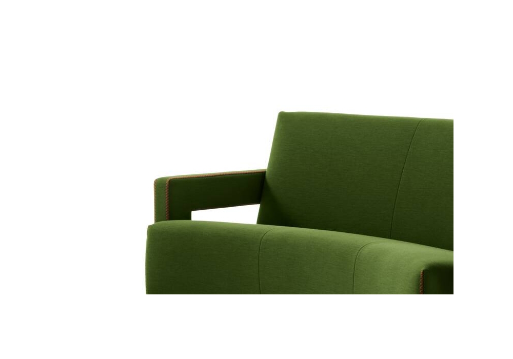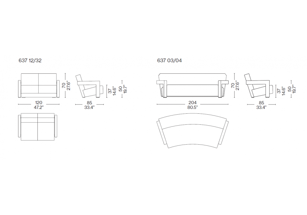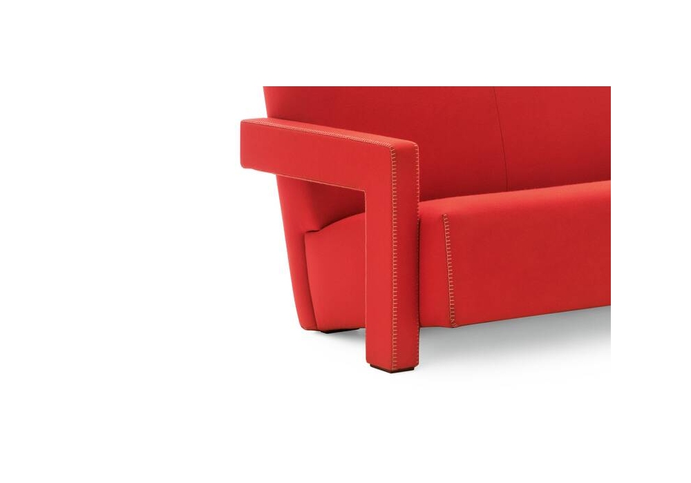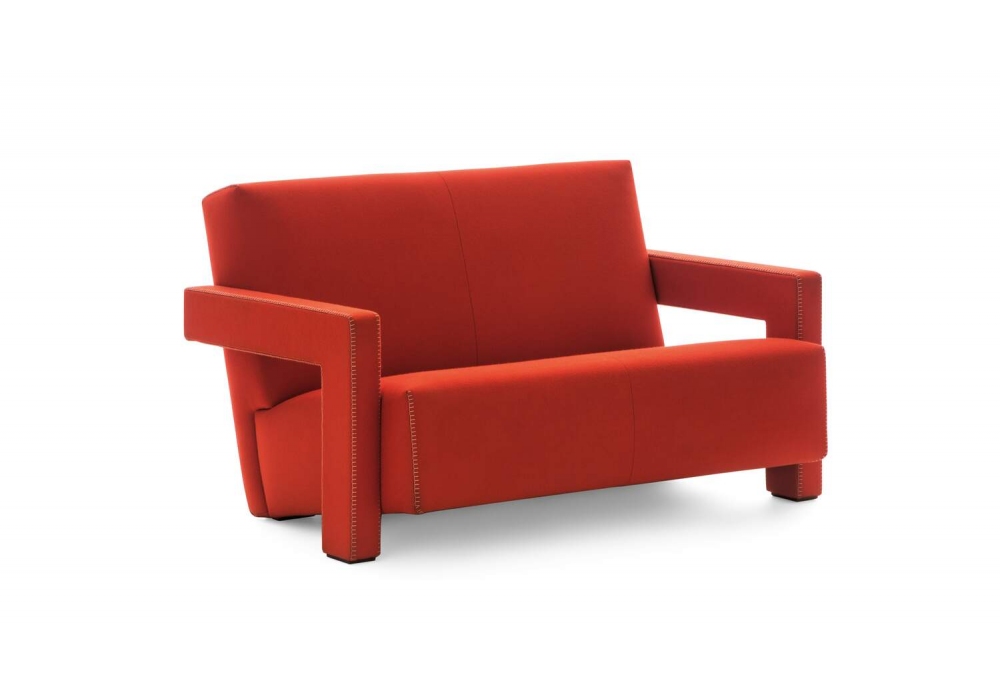 637 Utrecht diseñado por Gerrit T. Rietveld para Cassina es un sofá realizado con relleno de espuma de poliuretano y guata de poliéster, tapizado de tela o piel y costura de manta o zig zig en varios acabados.