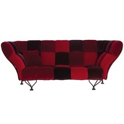33 Cuscini diseñado por Paolo Rizzatto para Driade es un sofá de tres plazas con tapicería de terciopelo Loira. Disponible en tres colores diferentes: rojo, azul y gris.
