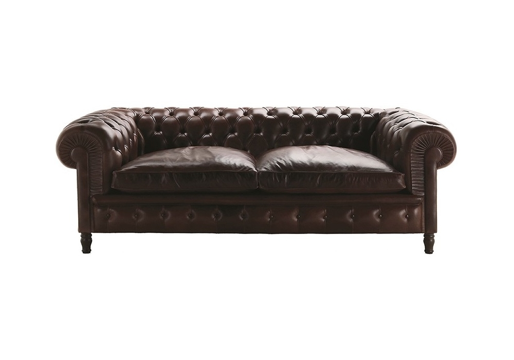 Chester, diseñado por Poltrona Frau, es un sofá con estructura portante de madera de haya curtida y cojín de asiento relleno de pluma de oca. El respaldo y los reposabrazos presentan un diseño capitonné hecho a mano. El respaldo exterior está rematado con una hilera de tachuelas forradas de cuero. Los pies están disponibles en las siguientes versiones: versión esférica (6 cm) o alta (12 cm) en madera de haya teñida de color nogal oscuro o madera de haya lacada en negro; pies de madera (13,7 cm) tapizados en cuero.