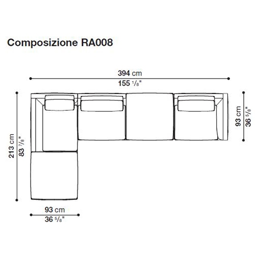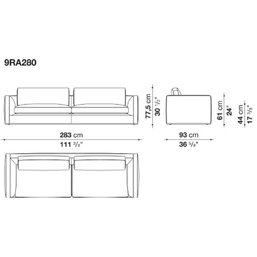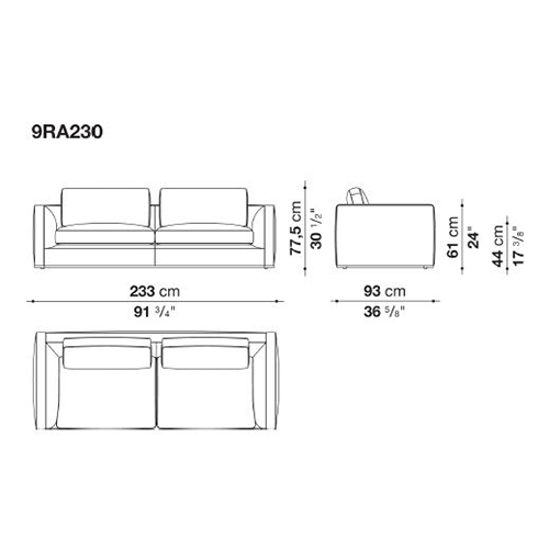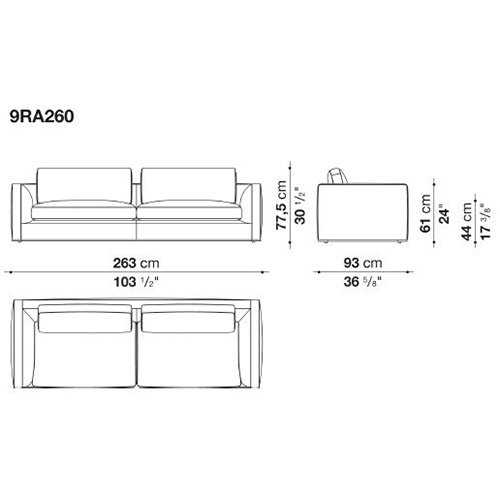 Richard, diseñado por Antonio Citterio para B&B Italia, es un sofá con base de aluminio y tapizado en diferentes tejidos o pieles. Disponible en numerosos modelos.