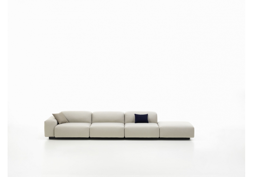 Soft Modular Sofa diseñado por Jasper Morrison para Vitra es realizado es realizado con estructura de acero, construcción de madera con resortes de acero, estructura de espuma de poliuretano y cubierta de visco. Con proporciones cuidadosamente equilibradas, gran comodidad y una renuncia consciente a los detalles decorativos, este sofá une las características de un sofá modular en su forma más pura. Disponible en diferentes acabados.