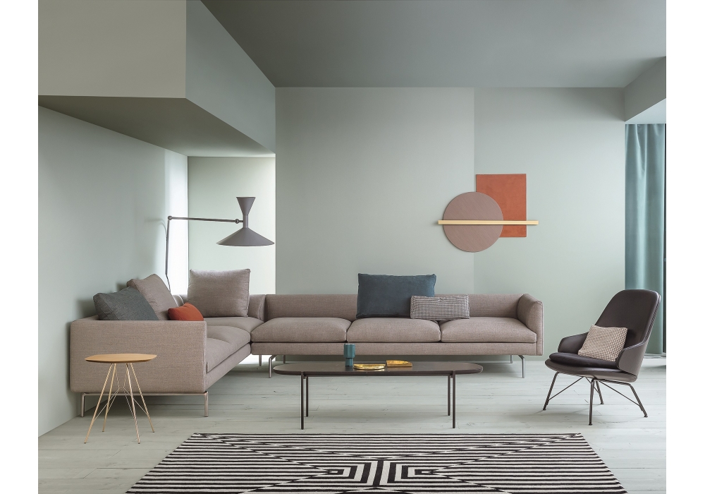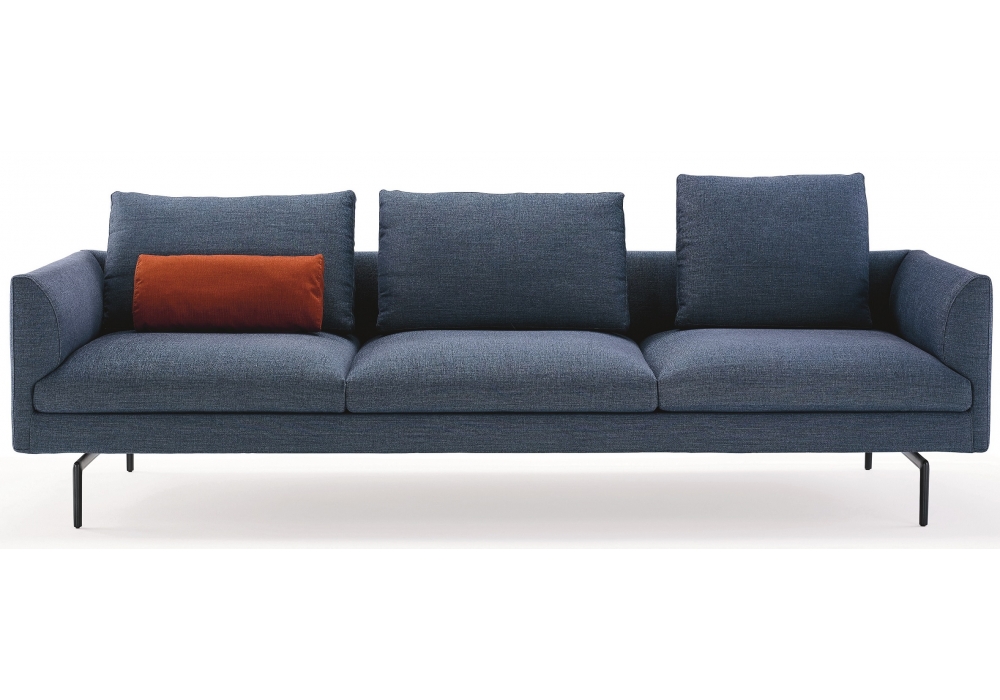 1333 Flamingo diseñado por Damian Williamson para Zanotta es un sofá con estructura de acero y revestimiento en tela o piel. Saltando sobre bandas elásticas. Acolchado de poliuretano / fibra de poliéster termosoldada. Pies de aluminio pulido, niquelado natural o negro, o pintado de negro. Disponible con o sin cojines.