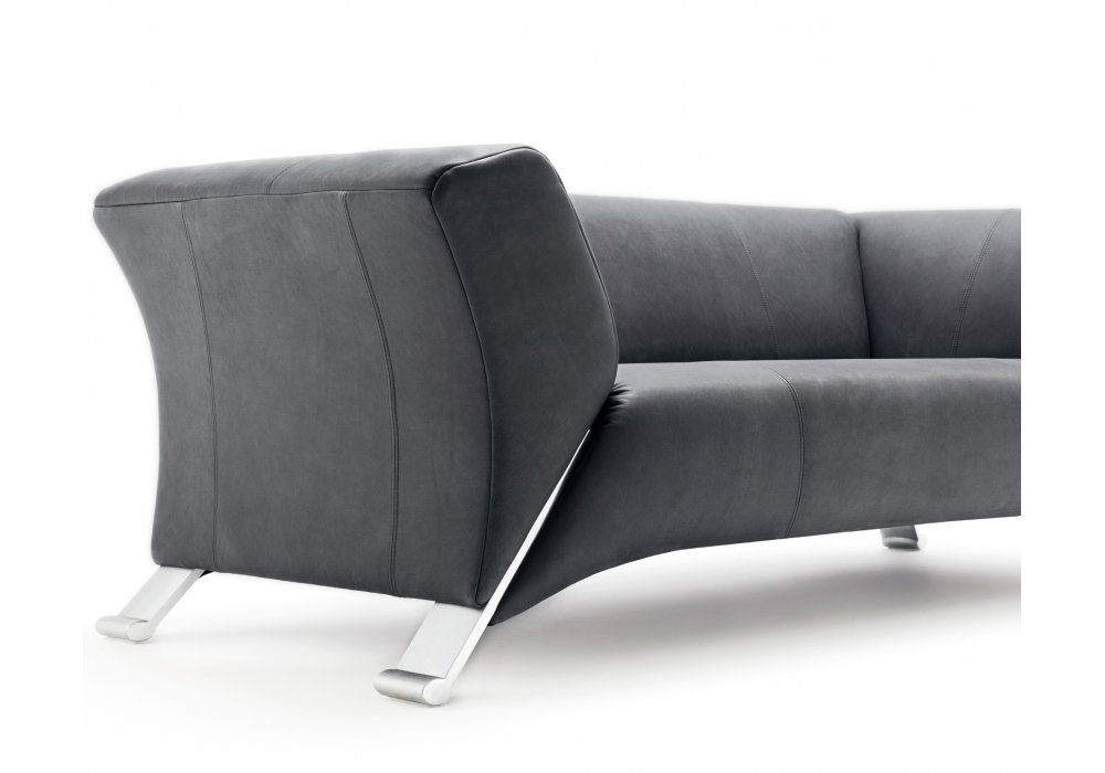 322 firmado por Rolf Benz es un sofá en el que la interacción entre el cuerpo compacto y las líneas suaves y fluidas son la expresión más sublime. Las patas de aluminio oblicuas se combinan armoniosamente con los elementos laterales curvos. El resultado: un diseño impresionante para el descanso sin igual.