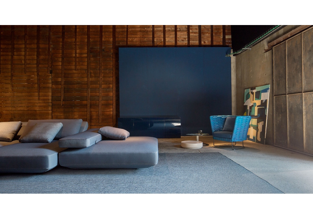 Agio diseñada por Francesco Rota para Paola Lenti es un sofá modular con asientos de grandes dimensiones. Los respaldos se pueden aplanar o ajustar tanto vertical como horizontalmente mediante un mecanismo oculto en el acolchado. La serie se completa con una mesita con estructura acolchada y tapizada y tablero en madera con acabado Mano Opaca.