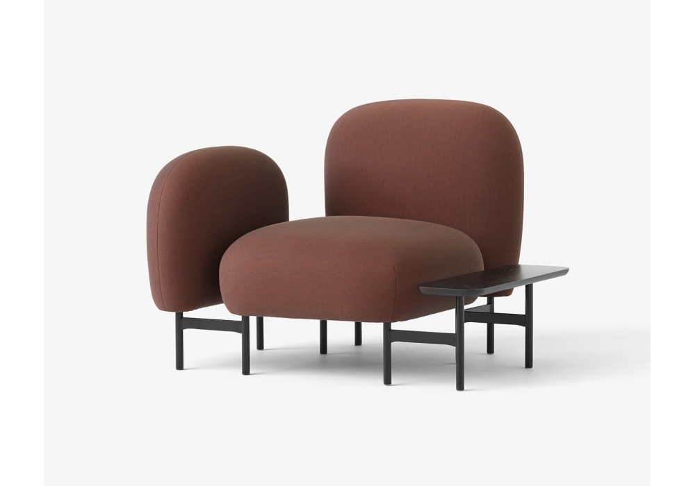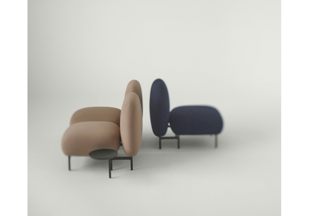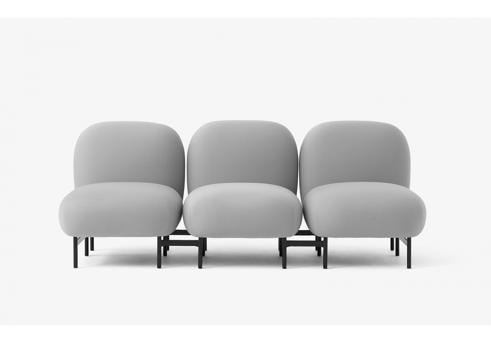 Isole diseñado por Nendo & Luca Nichetto para &Tradition es un sistema de asiento modular realizado con base de acero pintado en polvo, asiento, respaldo y reposabrazos de espuma HR moldeada. Tableros de MDF negro con superficie nanolaminada. El revestimiento está realizado con tejidos elásticos aptos tanto para ambientes domésticos como contract.