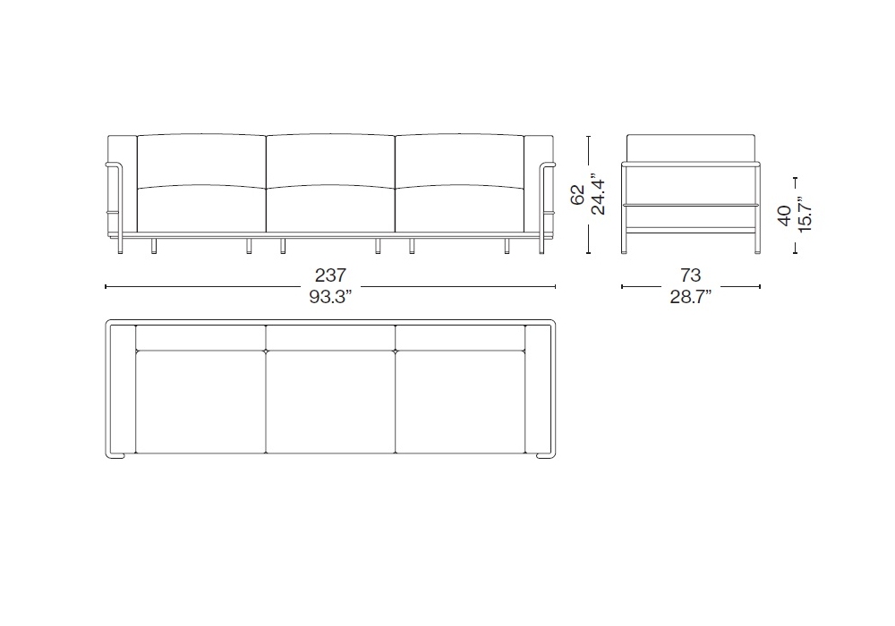 3 Fauteuil Grand Confort, Grand Modèle, Trois Places diseñado por Le Corbusier, Pierre Jeanneret, Charlotte Perriand para Cassina es un sofá de 3 plazas realizado con estructura cromada o pintada y cojines tapizados con tapicería de tela o piel.