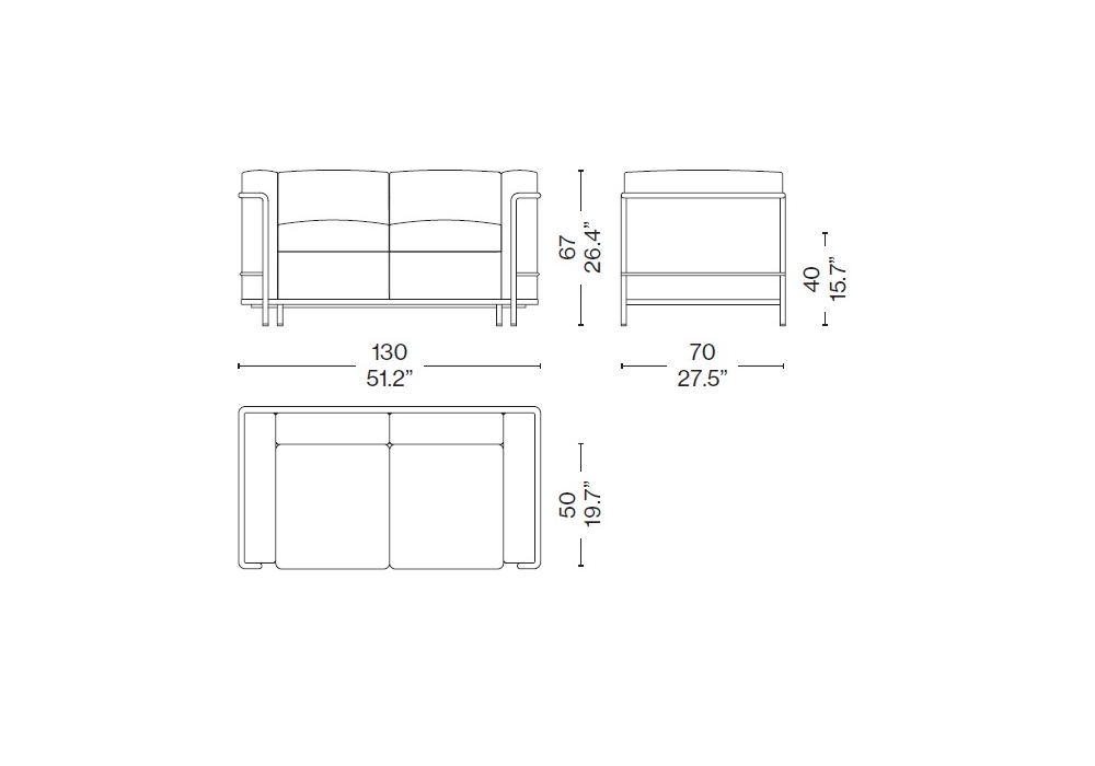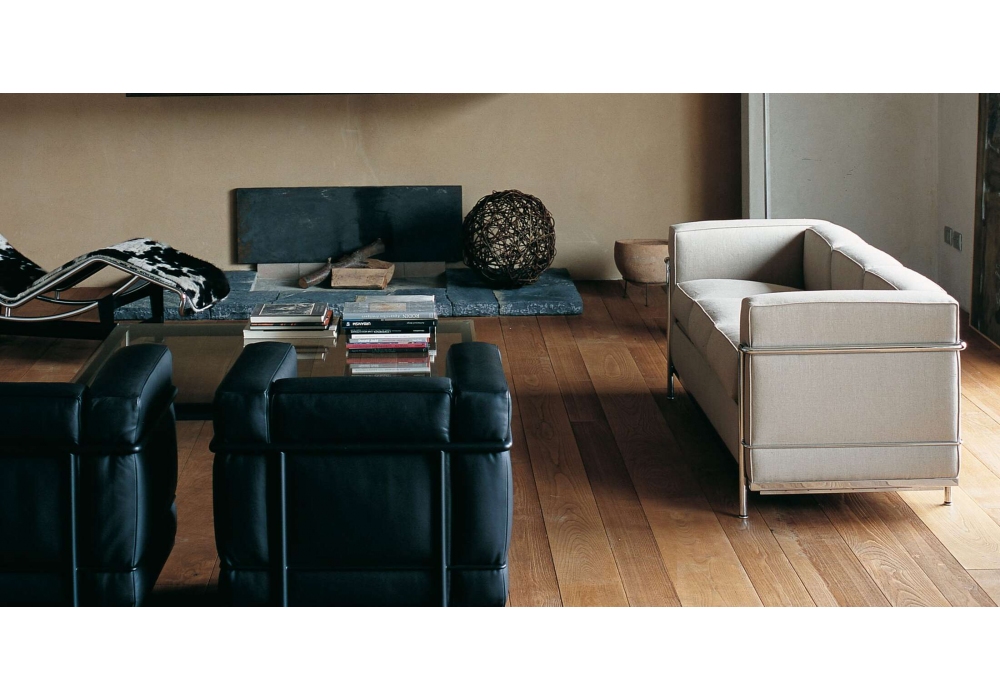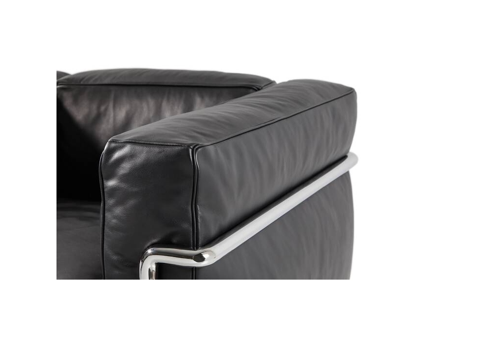 2 Fauteuil Grand Confort, Petit Modèle, Deux Places diseñado por Le Corbusier, Pierre Jeanneret, Charlotte Perriand para Cassina es un sofá de 2 plazas realizado con estructura cromada o pintada y cojines tapizados con tapicería de tela o piel.