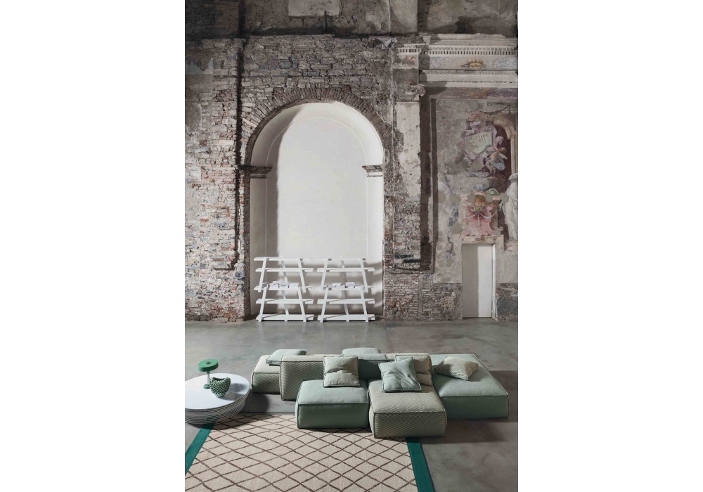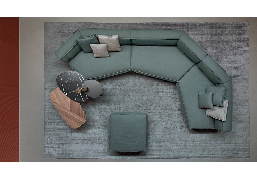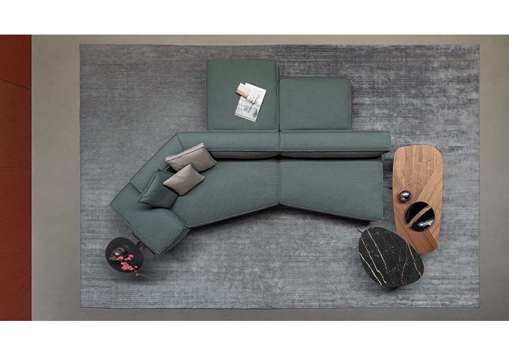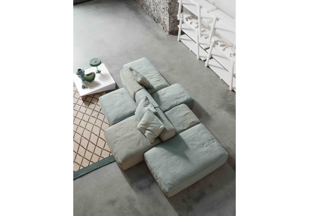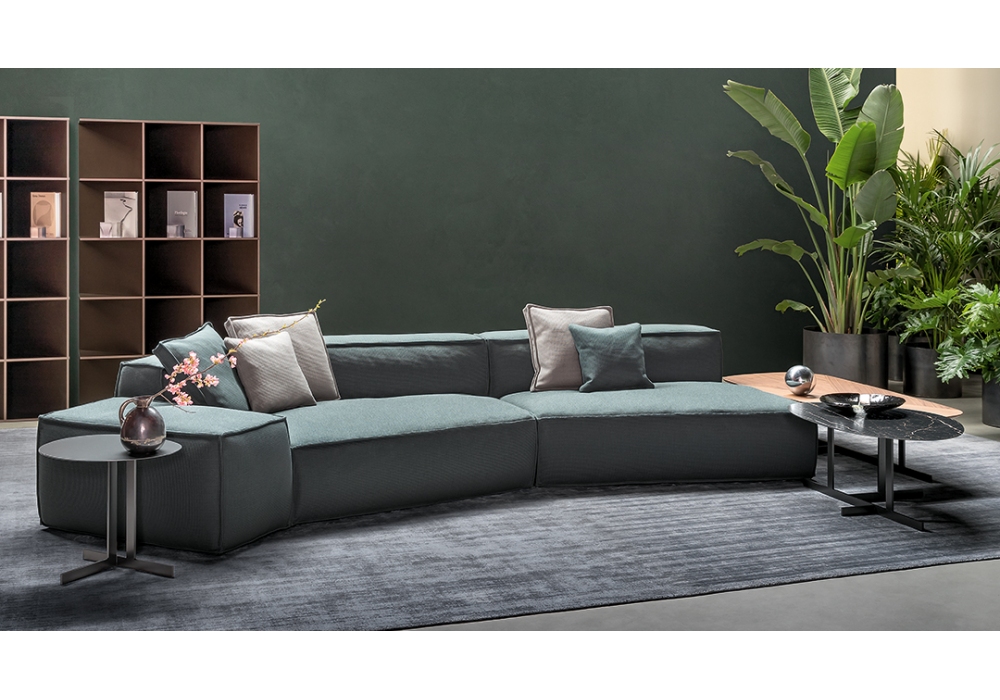 Peanut B diseñado por Mauro Lipparini para Bonaldo es un sofá modular con revestimiento de tela completamente desenfundable, en diferentes acabados. Los pies son de madera pintada gris antracita. Disponible en varias composiciones.