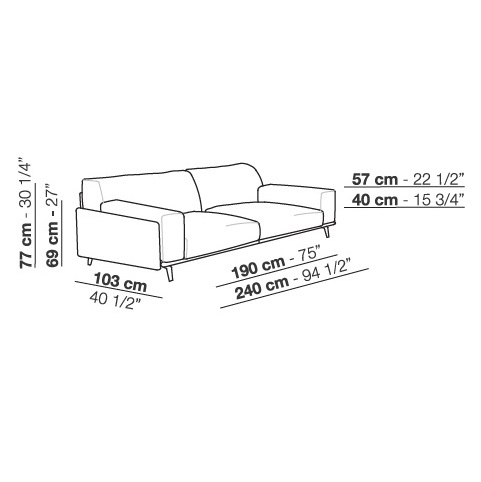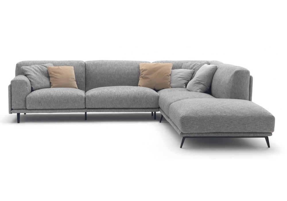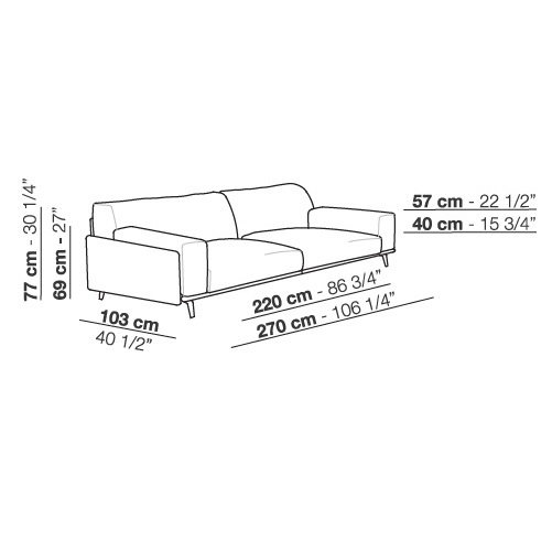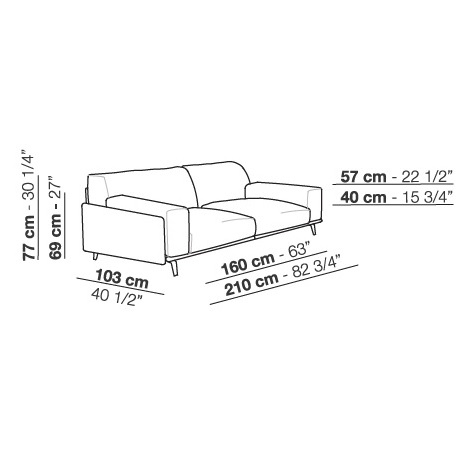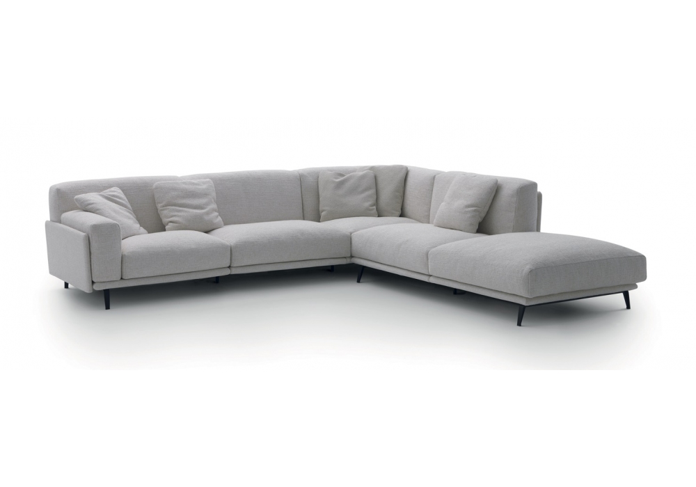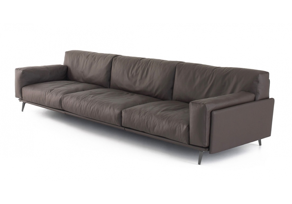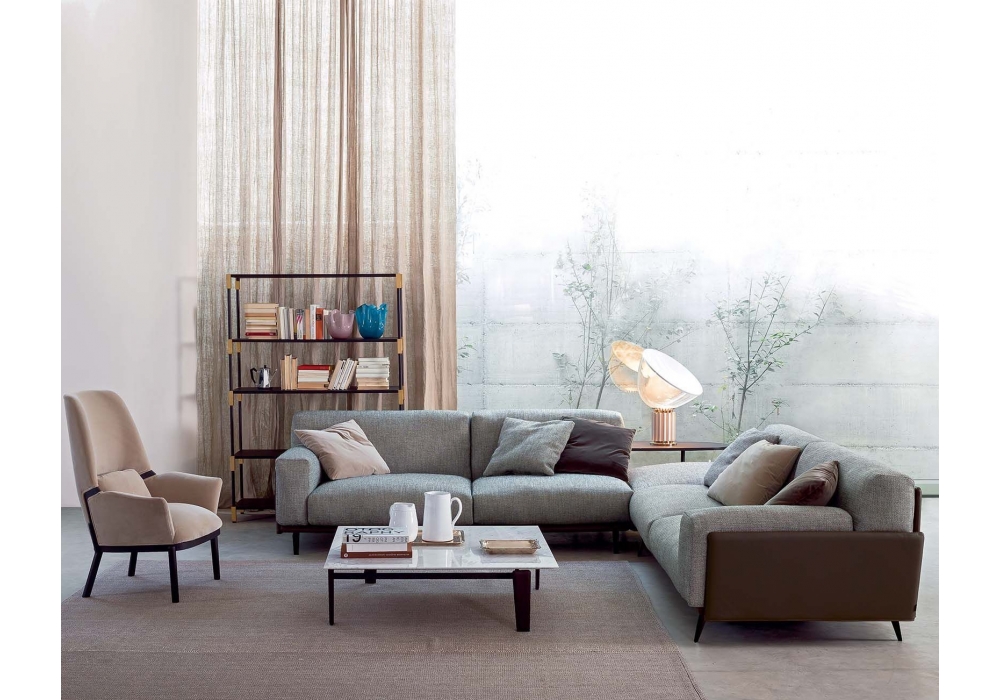 Frame diseñado por Carlo Colombo para Arflex es un sofá fijo o modular con tapizado disponible en tejido o piel. Patas en lacado negro o bruñido. Cojín de asiento, respaldo y apoyabrazos en poliuretano conformado de densidad diferenciada y revestimiento de pluma de oca/antiplumas.