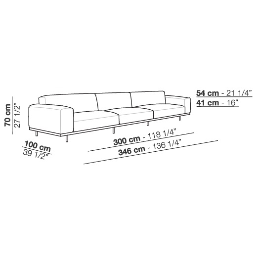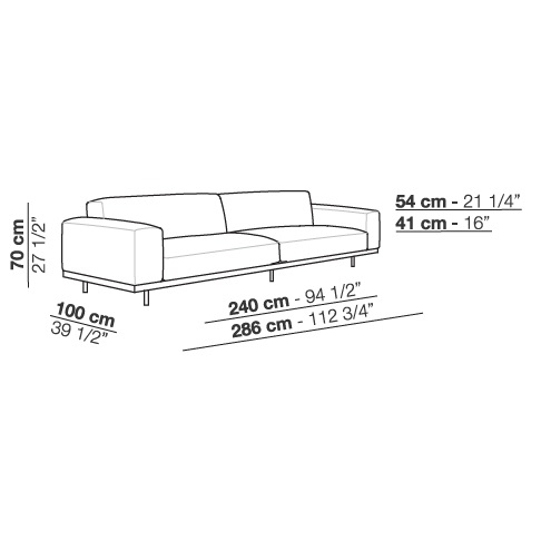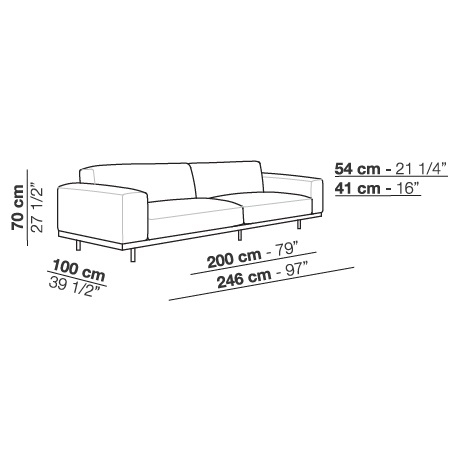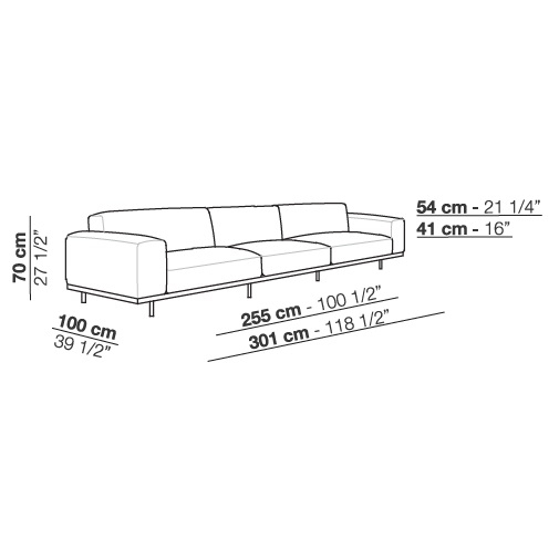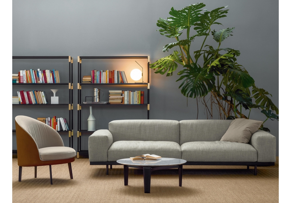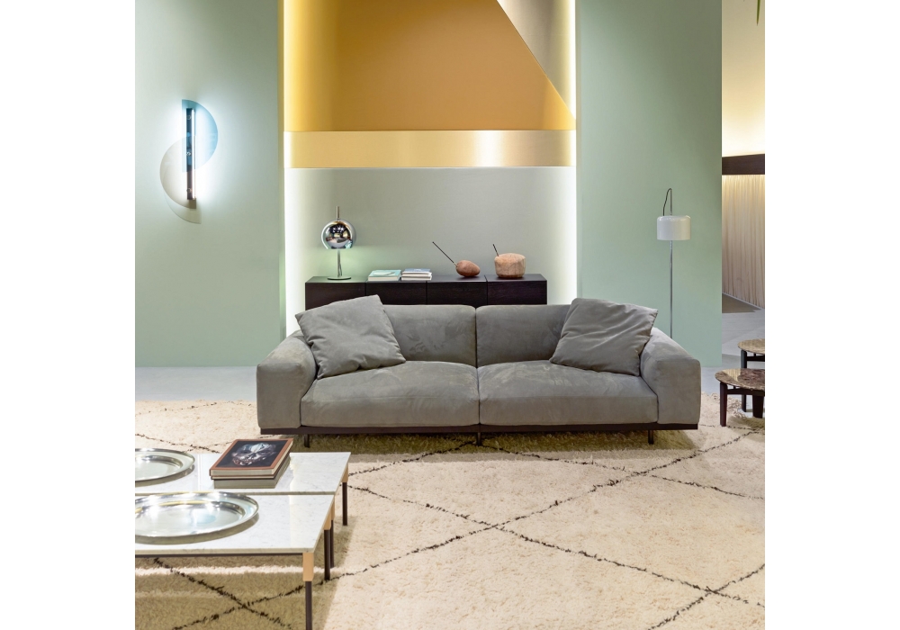 Naviglio diseñado por Umberto Asnago para Arflex es un sofá fijo o modular con revestimiento disponible en tejido o piel. Patas de metal lacado en grafito. Acolchado de poliuretano conformado de densidad diferenciada y fibra de poliéster. Perfil de madera tintada.