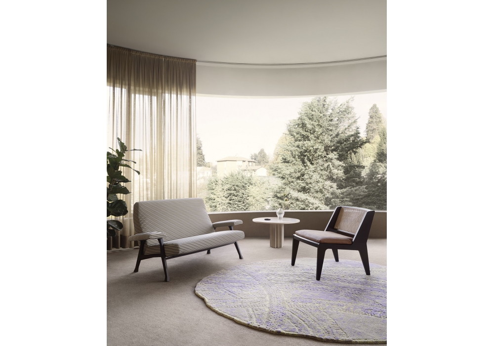 Hall diseñado por Roberto Menghi para Arflex es un sofá con estructura de madera teñida, acolchado en poliuretano moldeado / fibra de poliéster y revestimiento en tela o piel.