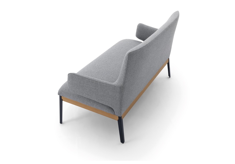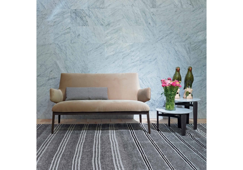 Hug Love Seat diseñado por Claesson Koivisto Rune para Arflex es un sofá con base de metal lacado, con patas regulables de PVC negro. Perfiles de madera tintada y tapizado en tela o piel.
