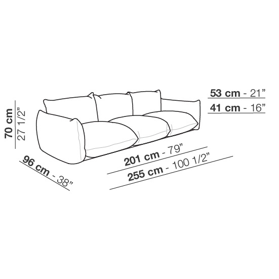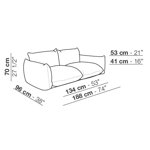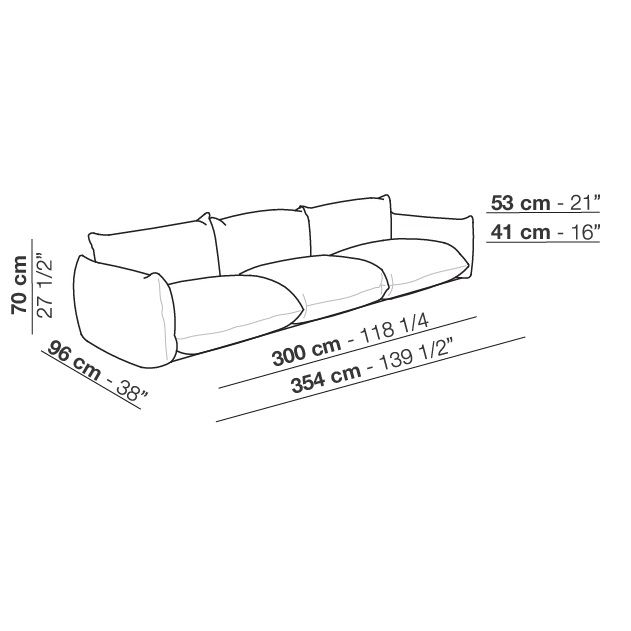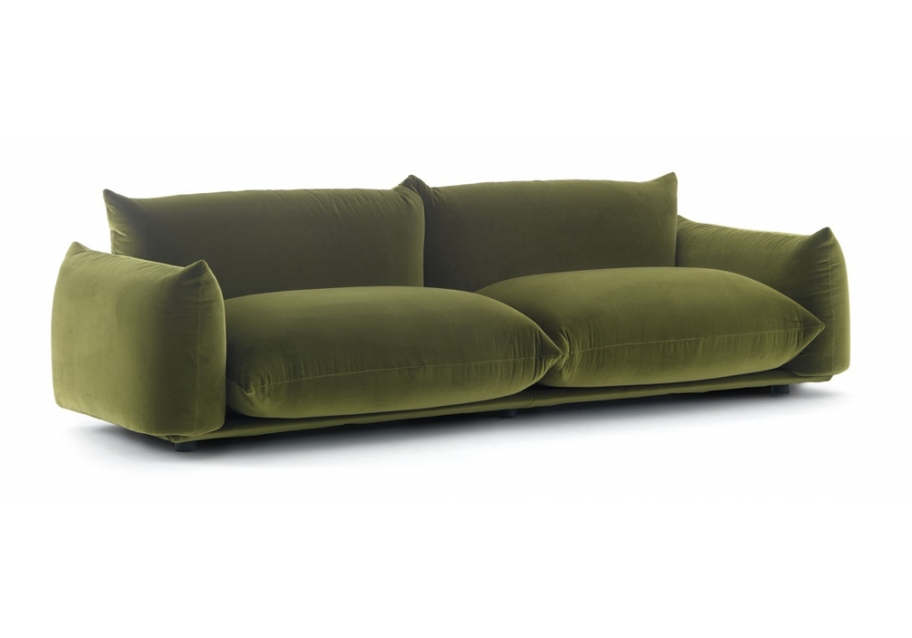 Marenco diseñado por Mario Marenco para Arflex es un sofá con revestimiento en tejido o piel. Patas en metal lacado en negro y protectores de nylon deslizantes. Cojín asiento, respaldo y reposabrazos en poliuretano perfilado con densidad diferenciada fibra de poliéster.