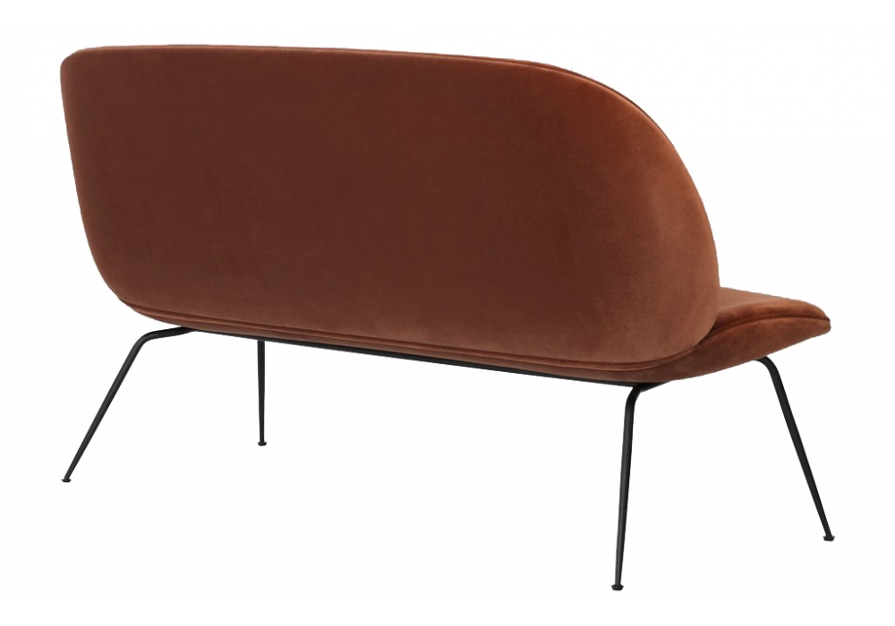 Beetle diseñado por GamFratesi para Gubi es un sofá con patas de acero pintado en polvo negro. Revestimiento en tela o piel.