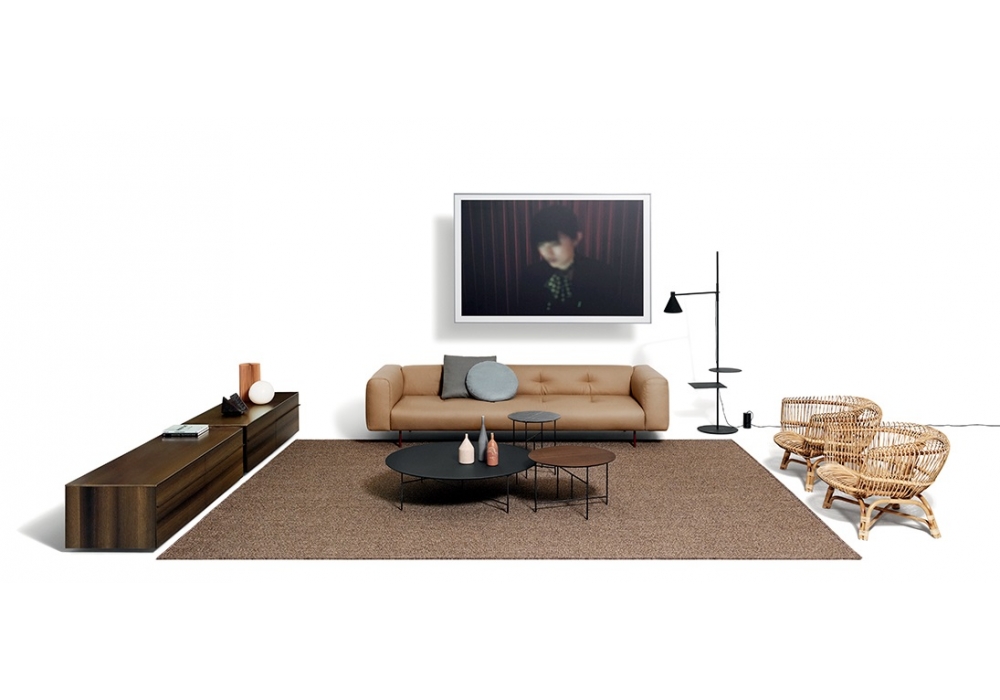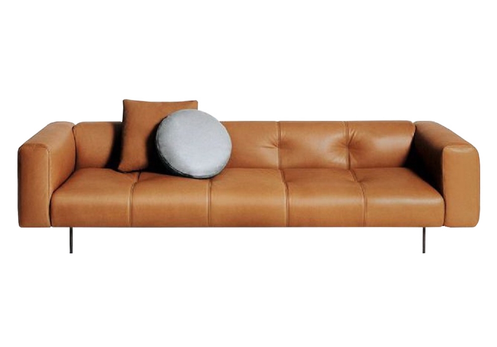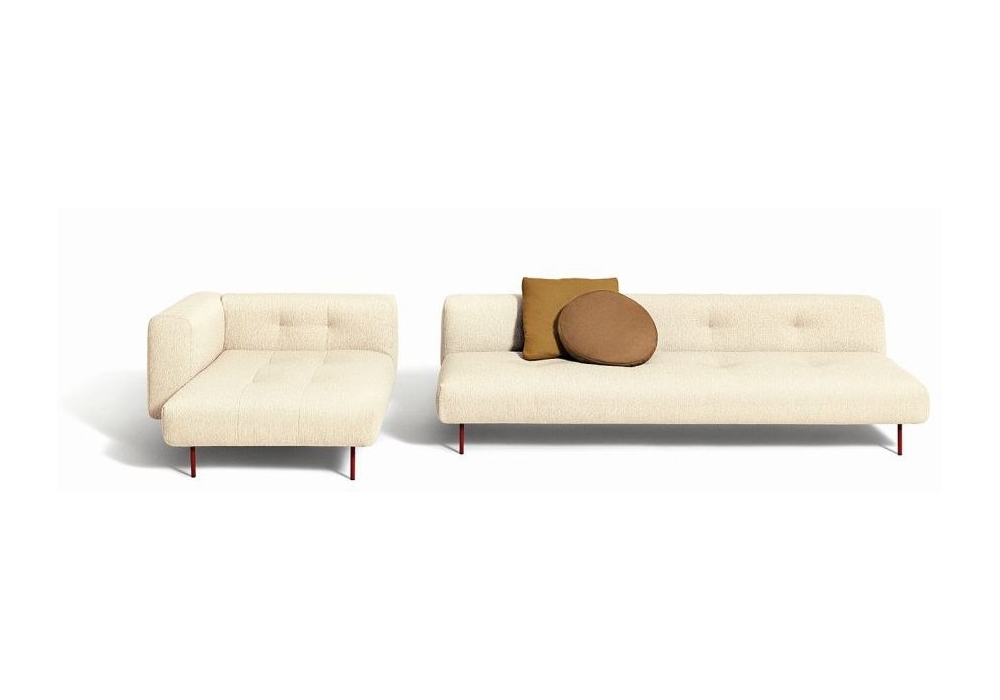 Erei diseñado por Elisa Ossino para DePadova es un sofá modular con estructura en madera y cinchas elásticas. Acolchado de poliuretano. Pies en acero barnizado, disponible en 2 acabados. Revestimiento desenfundable en tejido, fijo en piel o terciopelo. Disponible en diferentes composiciones.