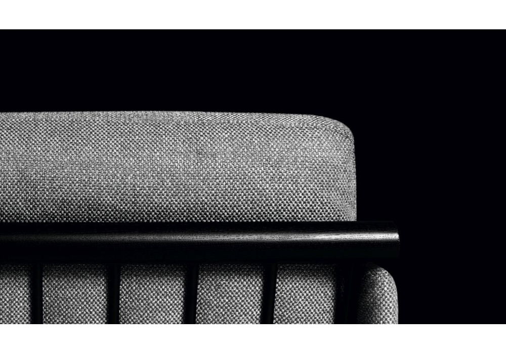 Étiquette diseñado por GamFratesi para DePadova es un sofá con estructura en acero barnizado y cinchas en cuero pigmentado. Cojines de asiento y respaldo en pluma de ganso con soporte de poliuretano. Revestimiento desenfundable en tejido, fijo en piel o terciopelo. También disponible en diferentes medidas.