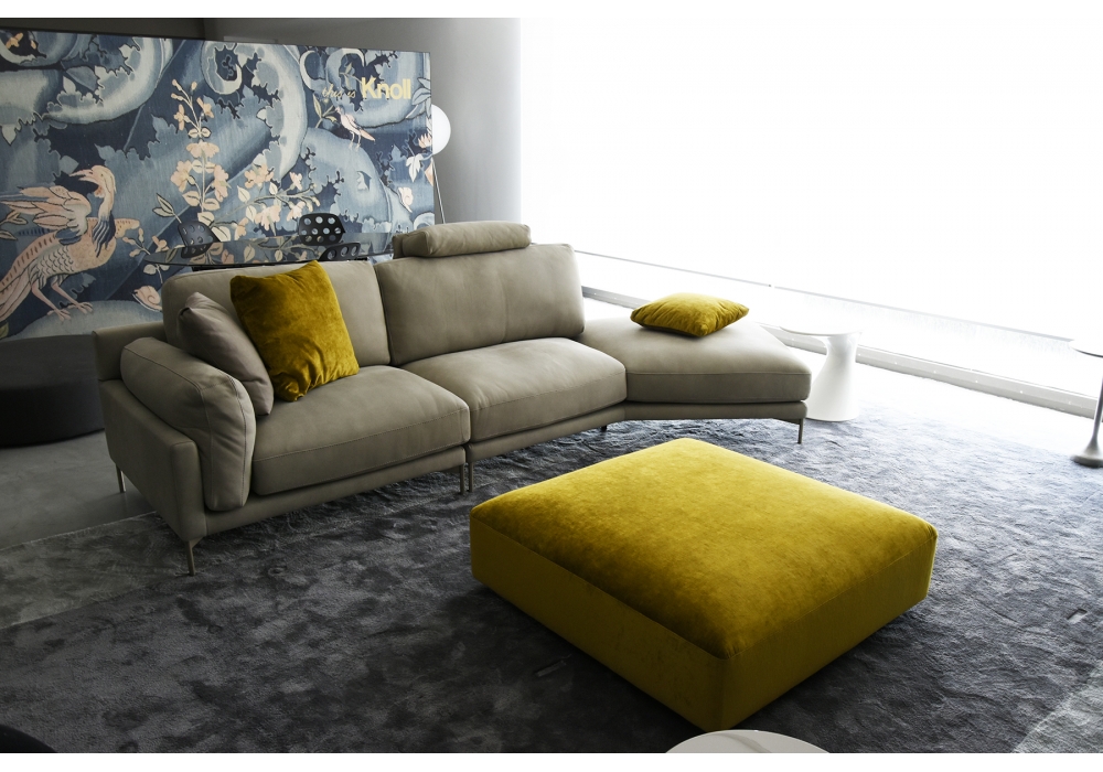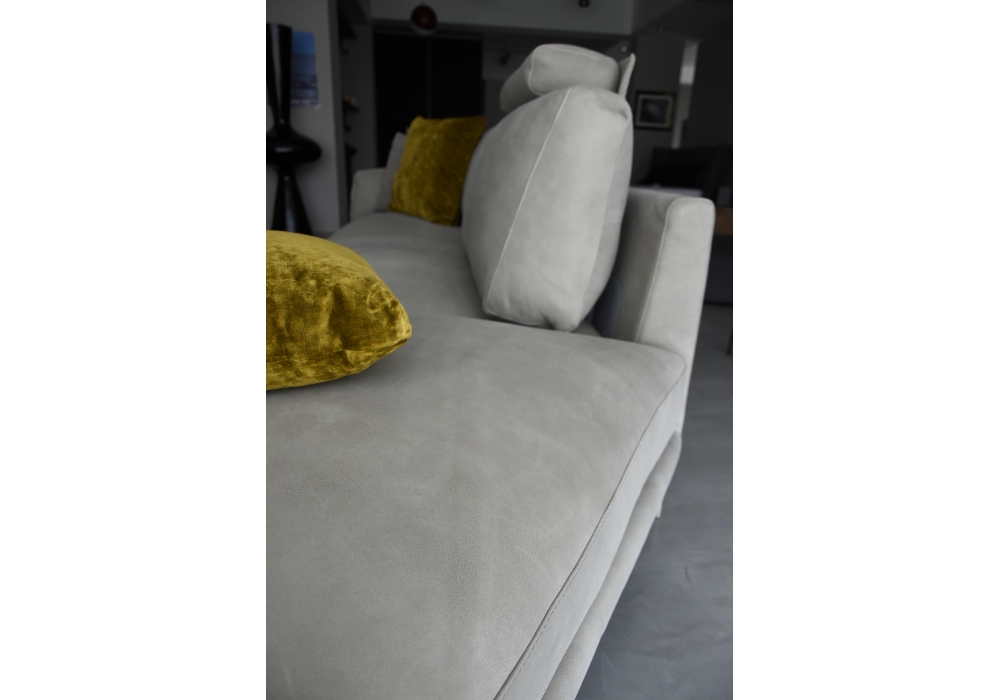 Cadorna diseñado por Nicoline Lab es un sofá con estructura de madera y madera contrachapada con soporte de metal y asiento con cintas elásticas. Cojines de asiento en espuma de poliuretano ecológico con doble intensidad. Almohadones de respaldo y apoyabrazos en fibra extra suave. Tapizado en tejido o piel.