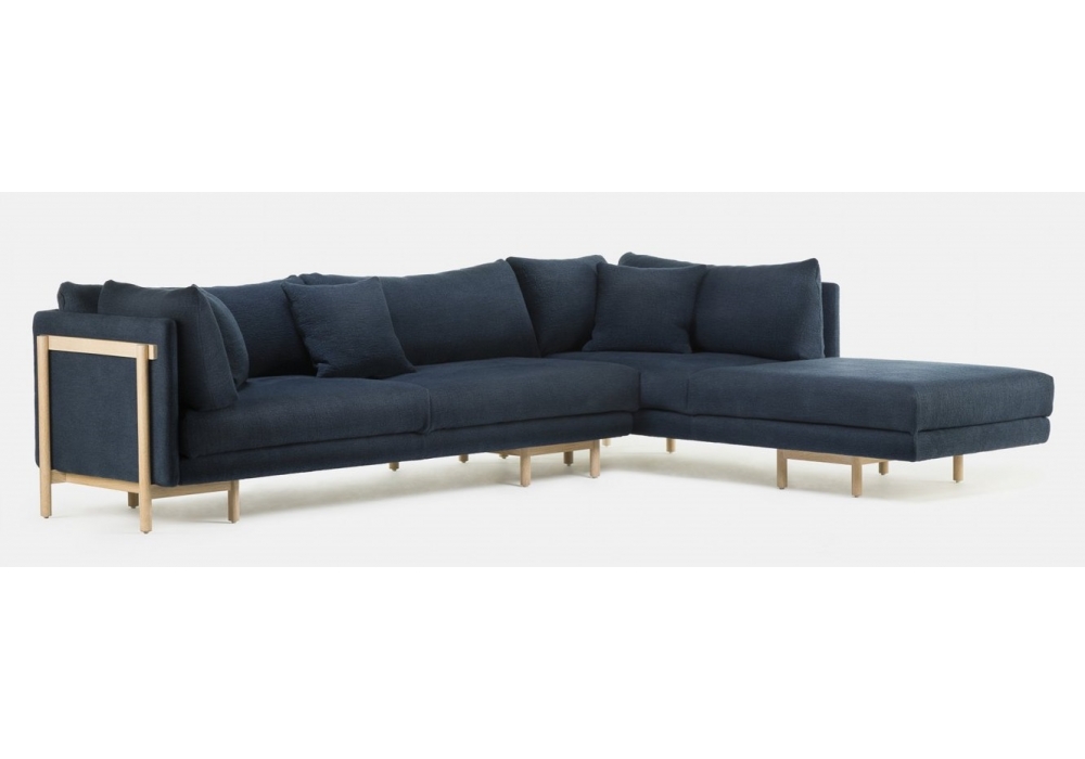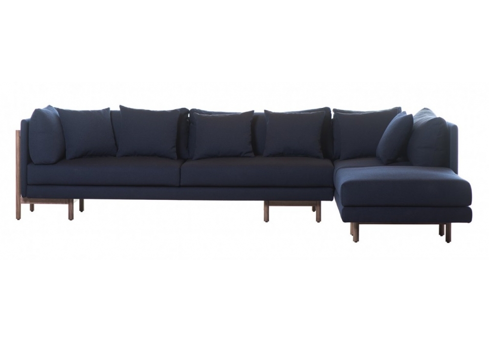 Frame diseñado por Neri & Hu para De La Espada es un sofá modular con revestimiento en tejido o piel y estructura en madera disponible en diferentes acabados. También disponible en muchas configuraciones.