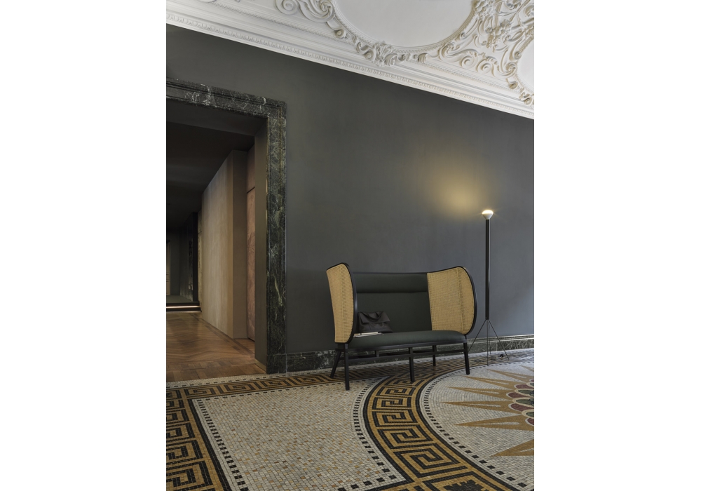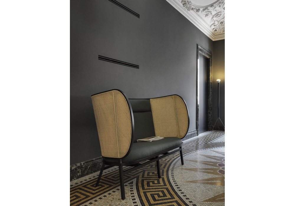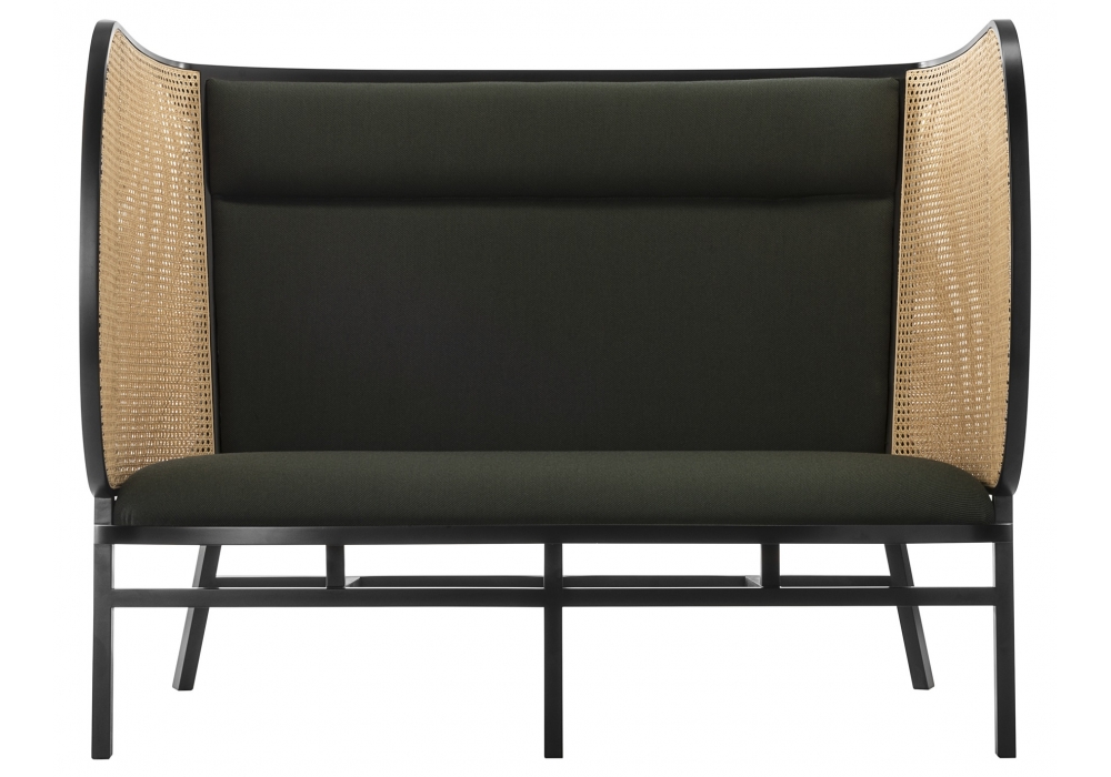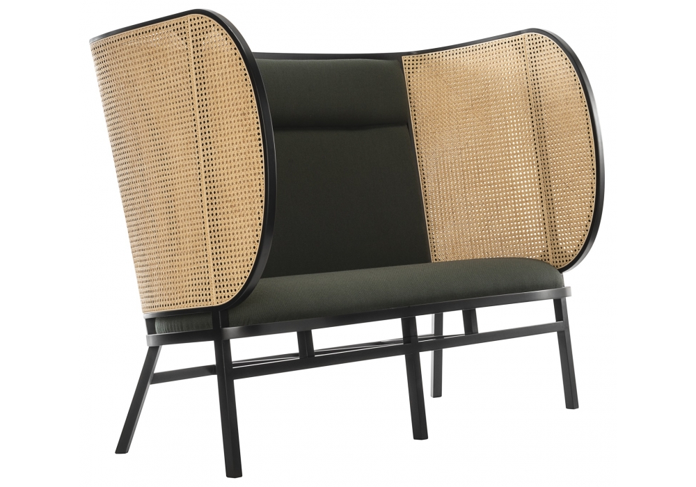 Hideout Loveseat diseñado por Front para Gebrüder Thonet Vienna es un sofá dos plazas. Asiento y respaldo acolchados en espuma de poliuretano de diferente densidad y elementos laterales en caña de ratán.