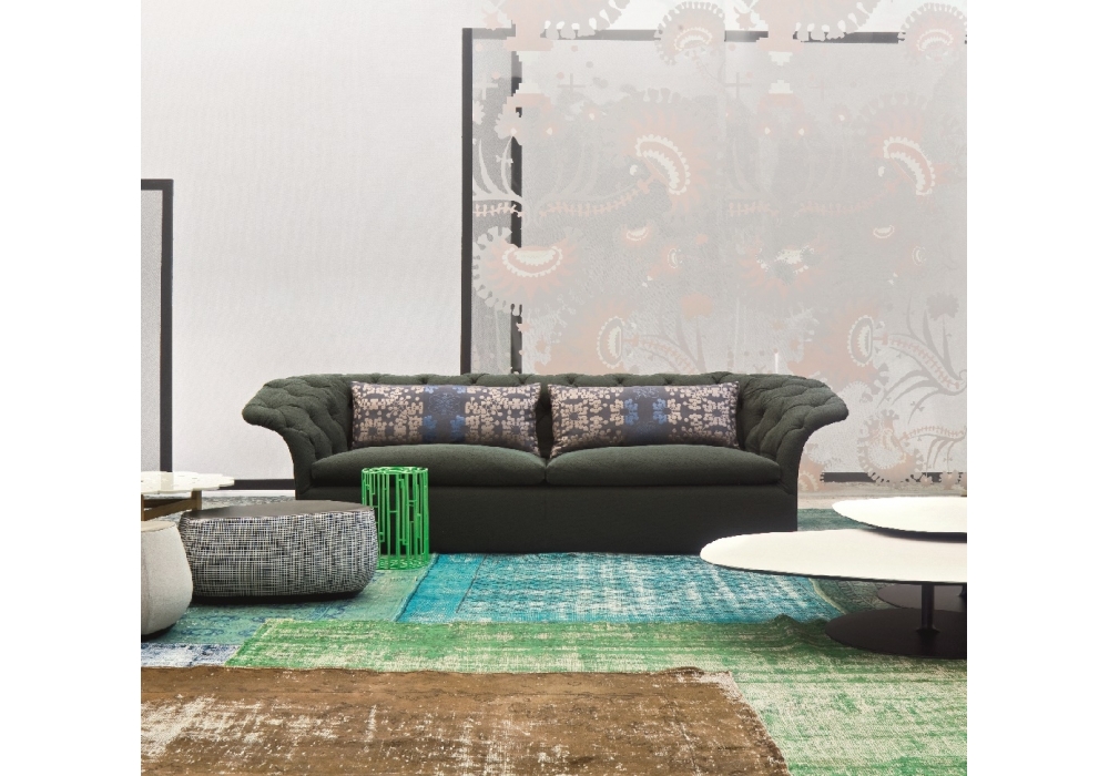 Bohemian is the seats collection designed by Patricia Urquiola for Moroso. Taking on button tufting, giving it a new spin, revolutionizing the concept, Patricia Urquiola has designed a range of products which appear to be liquid in shape as if they are melting over their frame to create soft, comforting, almost casual lines where the fabric or leather are fixed to the shell using press studs. The pieces appear to have a shawl draped over their shoulders, and the seat has various overlapping cushions: an almost obsessive attention to the design of its covering, layering leathers and other materials, colours, and fabric types. A sort of luxury patchwork which, when worn, gives the piece a nomadic, global spirit.