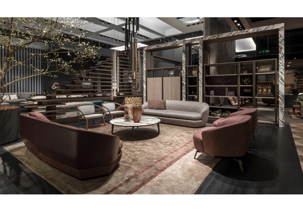 Tamino diseñado por Roberto Lazzeroni para Giorgetti es un sofá con base disponible en 2 versiones: base simple o con pies en metal fundido, acabado peltre. También disponible en 2 medidas.