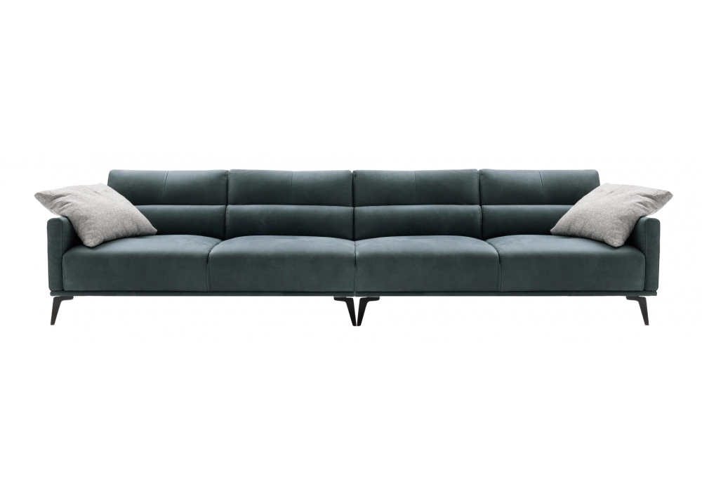 Canarie, diseñada por Nicoline, es un sofá con estructura de madera y madera contrachapada, con asiento elástico con correas elásticas. Cojines de asiento y respaldo en espuma de poliuretano ecológica. Funda en tejido o piel, no extraíble. Pies en metal pulido, satinado, bronce y pintado. Personalizable con el estante de madera en un lado del sofá.