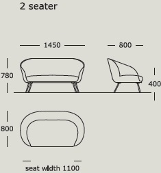 Cornet diseñado por Boris Berlin es un sofá con patas en acero con recubrimiento en polvo negro y acolchado con espuma de alta resistencia. Disponible en 2 modelos.