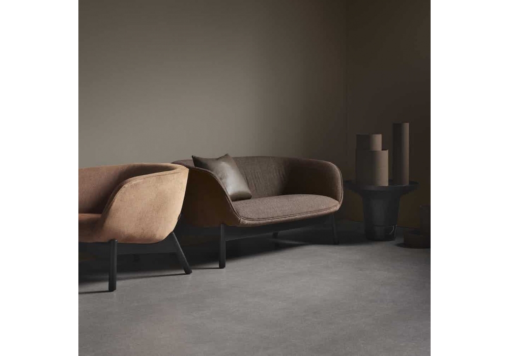 Vista diseñado por Anderssen & Voll para wendelbo es un sofá con patas en roble teñidas en negro y acolchado en espuma de alta resistencia. Revestimiento disponible en diferentes acabados.