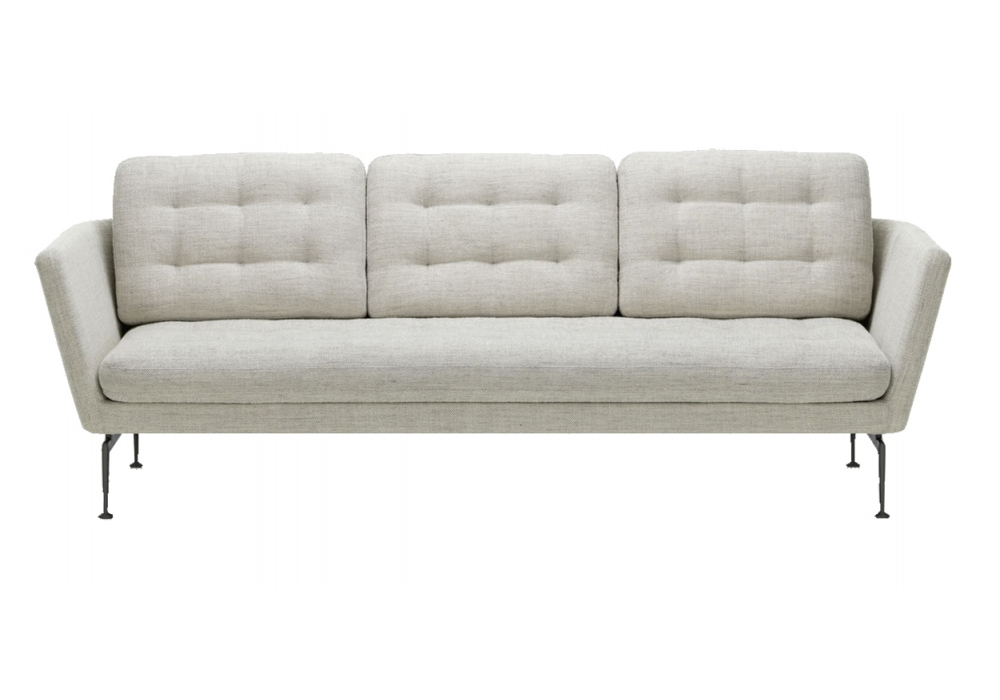 Suita Capitonné 3 plazas diseñado por Antonio Citterio para Vitra es un sofá de 3 plazas con cojines traseros de tela acolchada. Opciones de estante en la parte posterior del respaldo y el reposacabezas alto. El sofá tiene una base de aluminio fundido a presión con un acabado pulido o con recubrimiento de polvo.