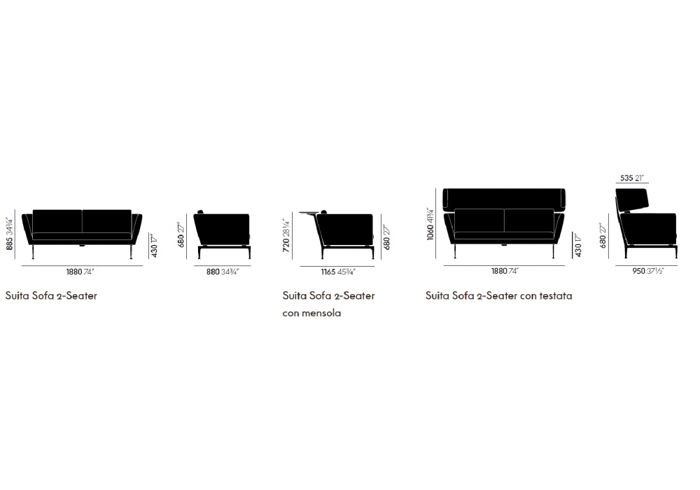 Suita Capitonné 2 plazas diseñado por Antonio Citterio para Vitra es un sofá de 2 plazas con cojines traseros de tela acolchada. Opciones de estante en la parte posterior del respaldo y el reposacabezas alto. El sofá tiene una base de aluminio fundido a presión con un acabado pulido o con recubrimiento de polvo.
