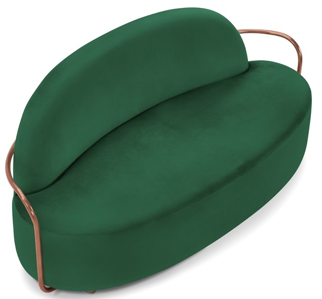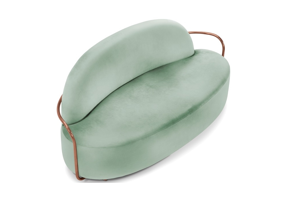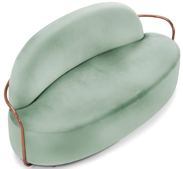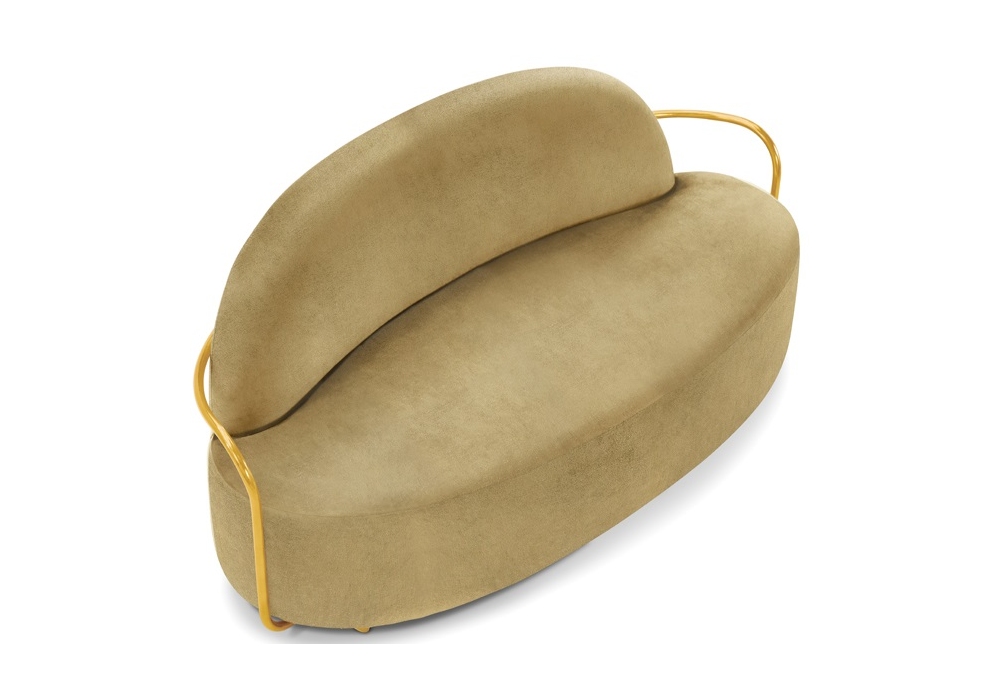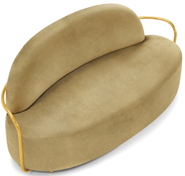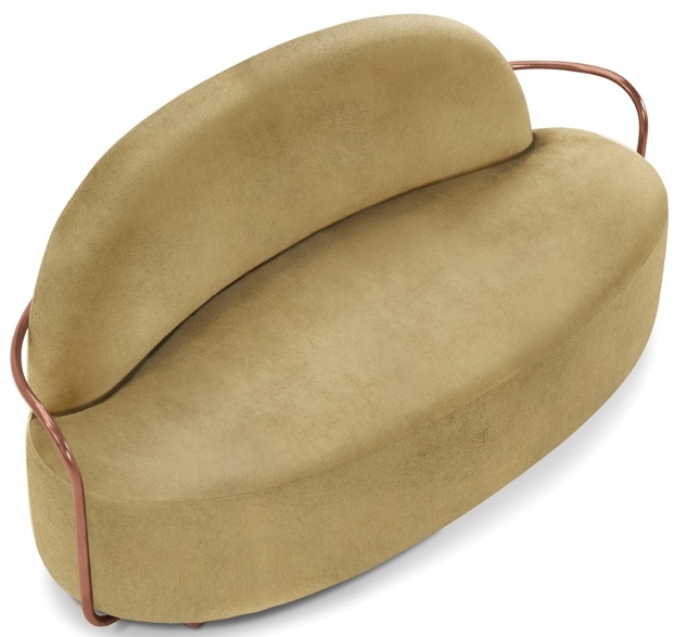 Orion diseñado por Nika Zupanc para Scarlet Splendour es un sofá hecho con una estructura metálica en oro u oro rosa. Disponible en diferentes acabados.