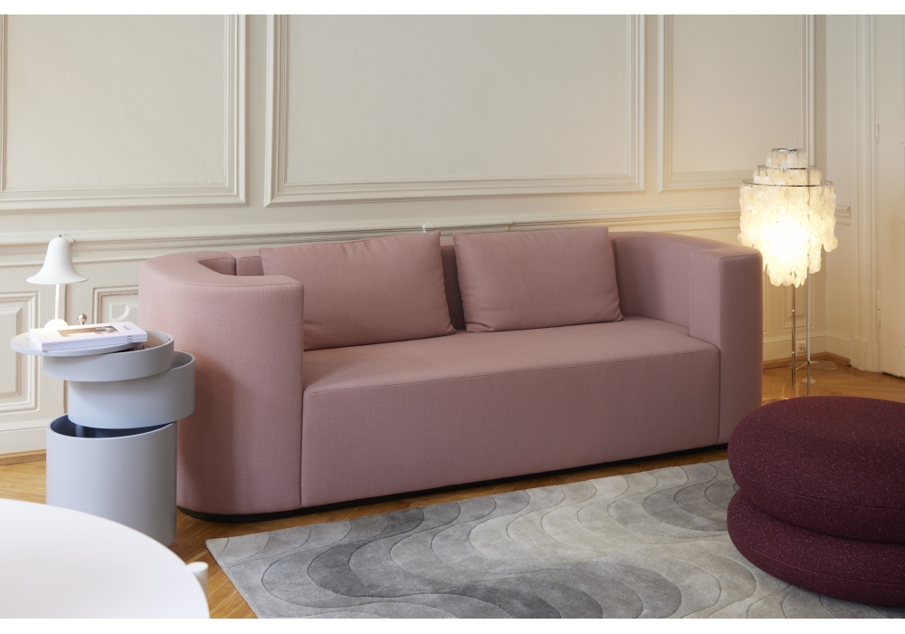 VP168 diseñado por Verner Panton para Verpan es un sofá totalmente acolchado, con muelles ensacados y estructura en madera y espuma CMHR. Tapizado en diferentes tejidos. Se incluyen dos cojines de pluma natural en el mismo acabado que el sofá.