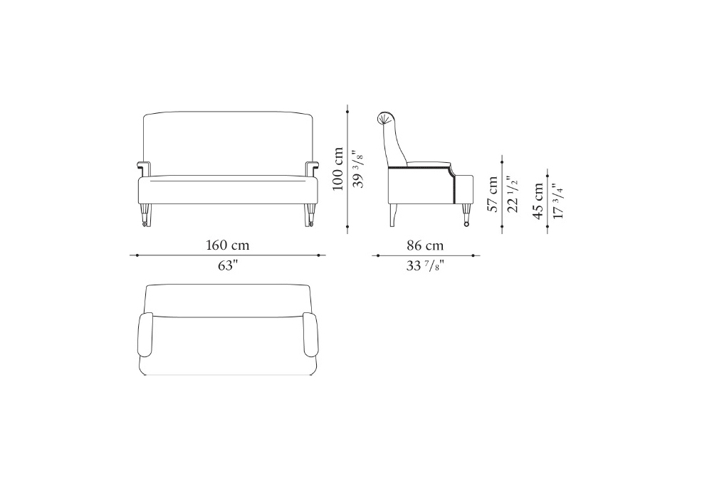 Abcd diseñado por Luigi Caccia Dominioni para Azucena es un sofà, con tapizado disponible en diferentes materiales. Pies teñidos en nogal, ruedas delanteras y tachuelas con acabado bronce.