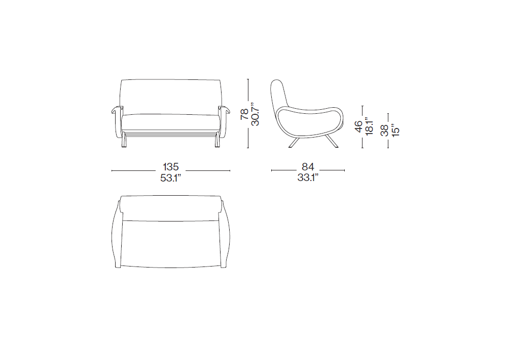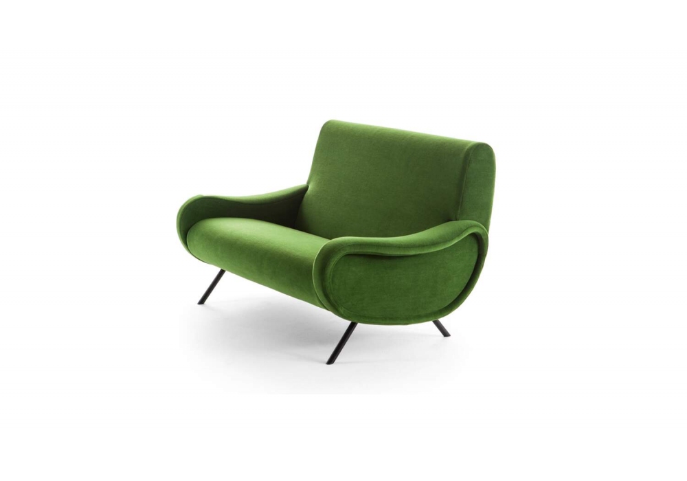 720 Lady diseñado por Marco Zanuso para Cassina es un sofá realizado con tapizado en tela o piel y base de acero. Disponible en diferentes acabados.