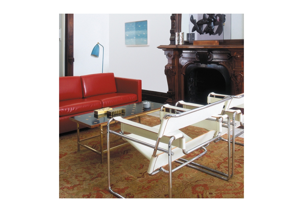 Pfister diseñado por Charles Pfister para Knoll es un sofá de dos o tres plazas con pies de metal y tapizado en diferentes tejidos o pieles.