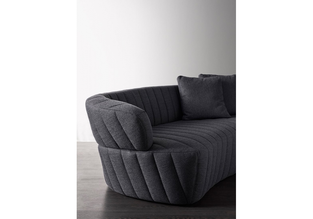 Joseph Stripe diseñado por Andrea Parisio para Meridiani es un sofá con estructura de madera y revestimiento alcochado y pespunteado concosturas verticales, disponible en tejido o piel. Patas negras en ABS.