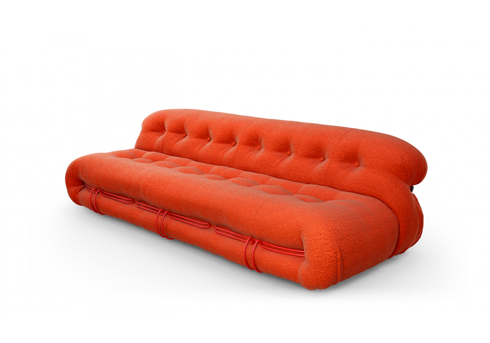 Soriana diseñado por Afra & Tobia Scarpa para Cassina es un sofá de dos / tres plazas fabricado con PET 100% reciclado o relleno de guata. Estructura en metal pintado y tapizado en tela o piel. Disponible en diferentes acabados y dimensiones.