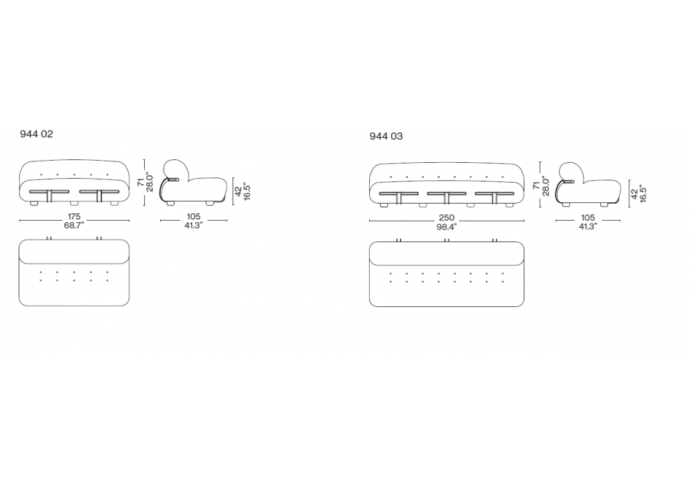 | Dimensiones | 175 x 105 x 71 cm; 250 x 105 x 71 cm. |