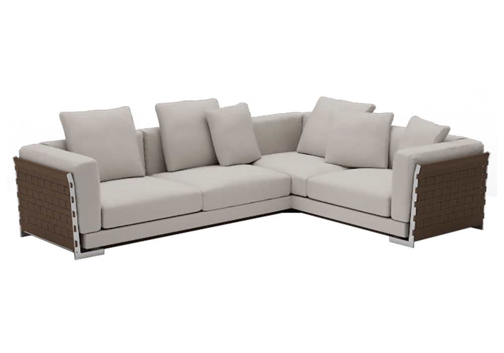 Cestone diseñado por Antonio Citterio para Flexform es un sofá modular con respaldo y aros de estructura metálica revestidos en cuero trenzado y asiento de metal y madera maciza con relleno de espuma de poliuretano. Los cojines del respaldo, asiento y apoyabrazos están acolchados de oca y tapizados en cuero o tela. El sofá está disponible en diferentes configuraciones.