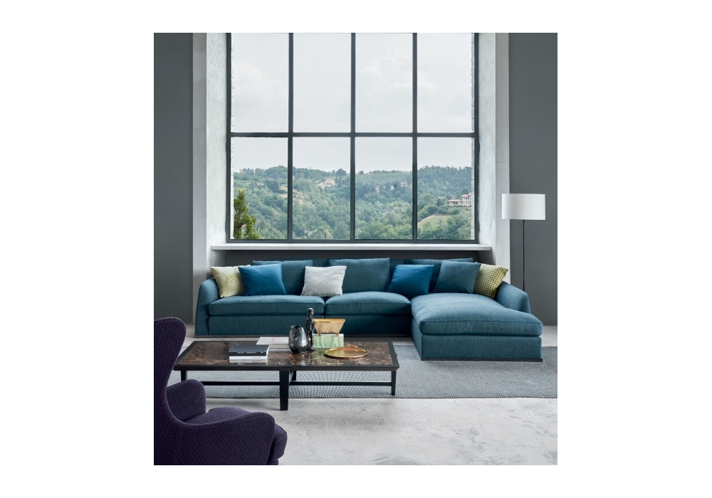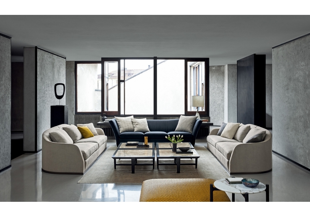 Alfred diseñado por Roberto Lazzeroni para Flexform es un sofá modular compuesto por una estructura de madera maciza acolchada con poliuretano, base de metal y cojines acolchados con plumón de ganso. El sofá está tapizado en piel o tela.