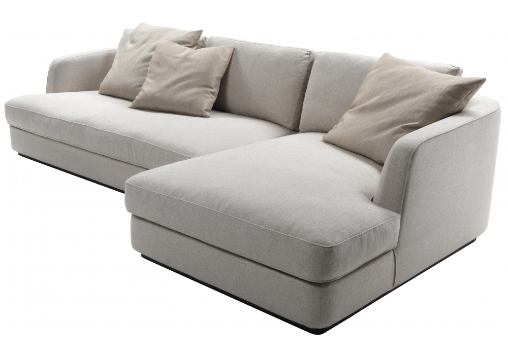 Barret diseñado por Roberto Lazzeroni para Flexform es un sofá modular compuesto por estructura de madera maciza acolchada de poliuretano, base de fresno macizo y cojines acolchados de pluma de ganso. El sofá está disponible con tapizado de tela y ribete a su elección o con tapizado de cuero y ribete con el mismo cuero.