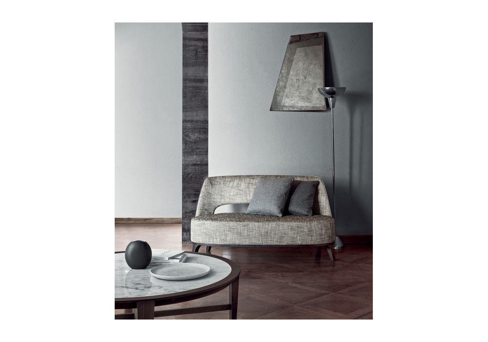 Ermione diseñado por Roberto Lazzeroni para Flexform es un sofá compuesto por base de fresno macizo, asiento de contrachapado acolchado de poliuretano y respaldo de metal acolchado de poliuretano. El sofá está disponible con tapizado de tela y ribete de su elección o con tapizado de cuero y ribete con el mismo cuero.