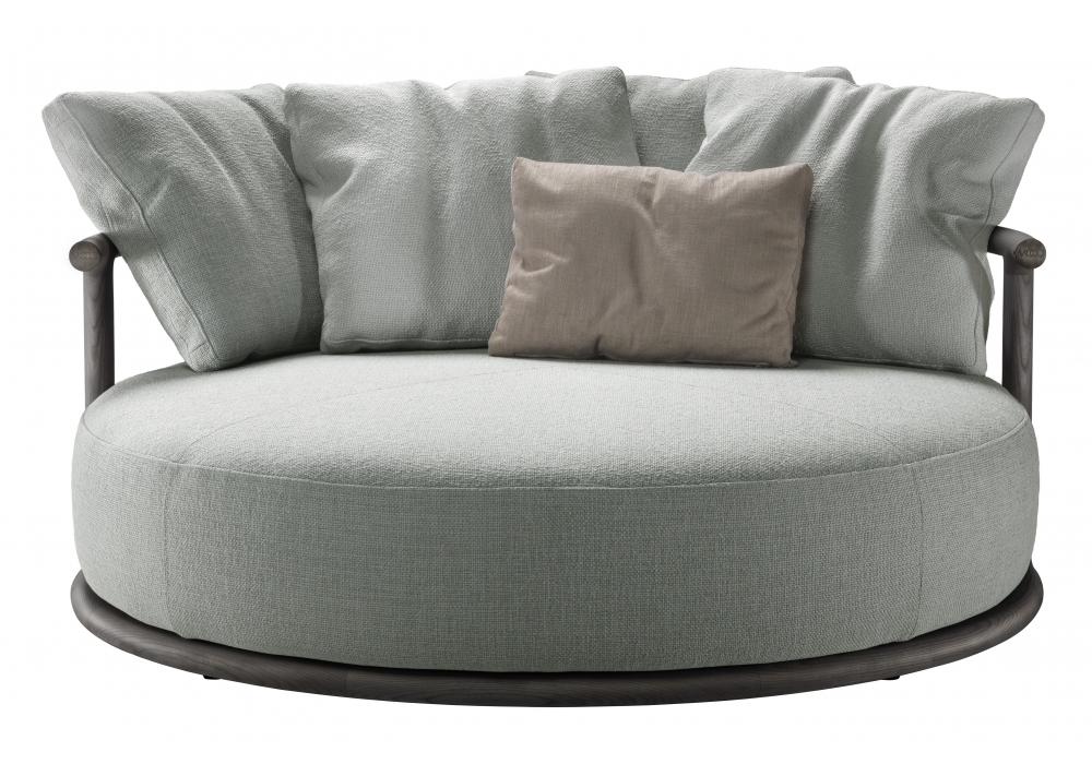 Icaro diseñado por Roberto Lazzeroni para Flexform es un sofá redondo compuesto por asiento de madera maciza acolchado de poliuretano y dacrón y estructura de fresno macizo. El sofá está disponible con tapizado de tela o cuero.