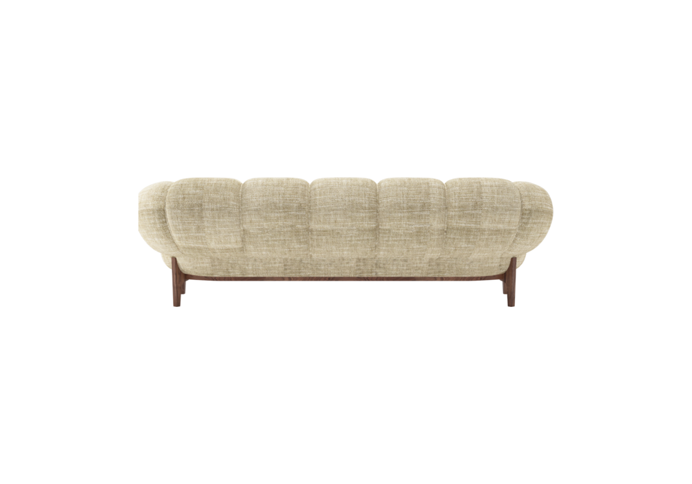Croissant diseñado por Illum Wikkelsø para Gubi es un sofá tapizado integral con base de nogal americano o roble.
