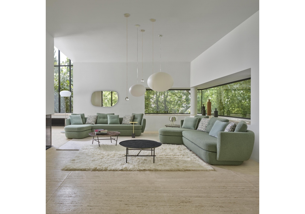 Ipanema diseñado por Didier Gomez para Ligne Roset es un sofá con estructura en tubular de acero soldado mecánicamente y acolchado en espuma Bultex de alta resiliencia y plumas de pato. Revestimeinto en tejido o piel. También disponible en diferentes modelos. Una pieza de conexión se fija a cada elemento de la colección para permitir la conexión entre los distintos elementos.
