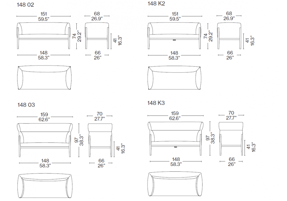 148 Cotone Slim diseñado por Ronan & Erwan Bouroullec para Cassina es un sofá realizado con base de aluminio y revestimiento en tela o piel. Disponible con respaldo alto o bajo.