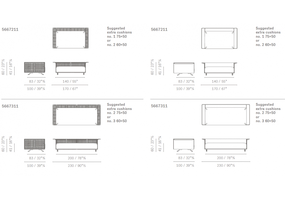 | Dimensiones | • 140 x 100 x H 60 cm; • 230 x 100 x H 60 cm |